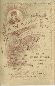 Cabinet photo taken by A. W. Kimball, Photographic Studio, No. 191 Water Street, Gardiner, Maine.