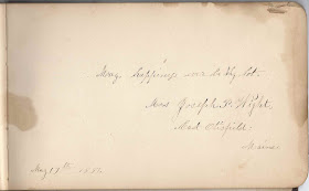 In the 1880 Census, Will P. Wight was living in the home of his parents at Otisfield, Maine, but apparently soon after he moved to East Douglas, Massachusetts, where he was living at the time he started compiling autographs in his album.