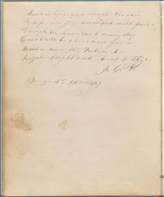 - 2 page sentiment by J. C. P., signed at Bangor, Maine on April 15, 1849. Presumably Adalaide's future husband, James C. Porter, whom she married on November 12, 1850 at Bangor, Maine.